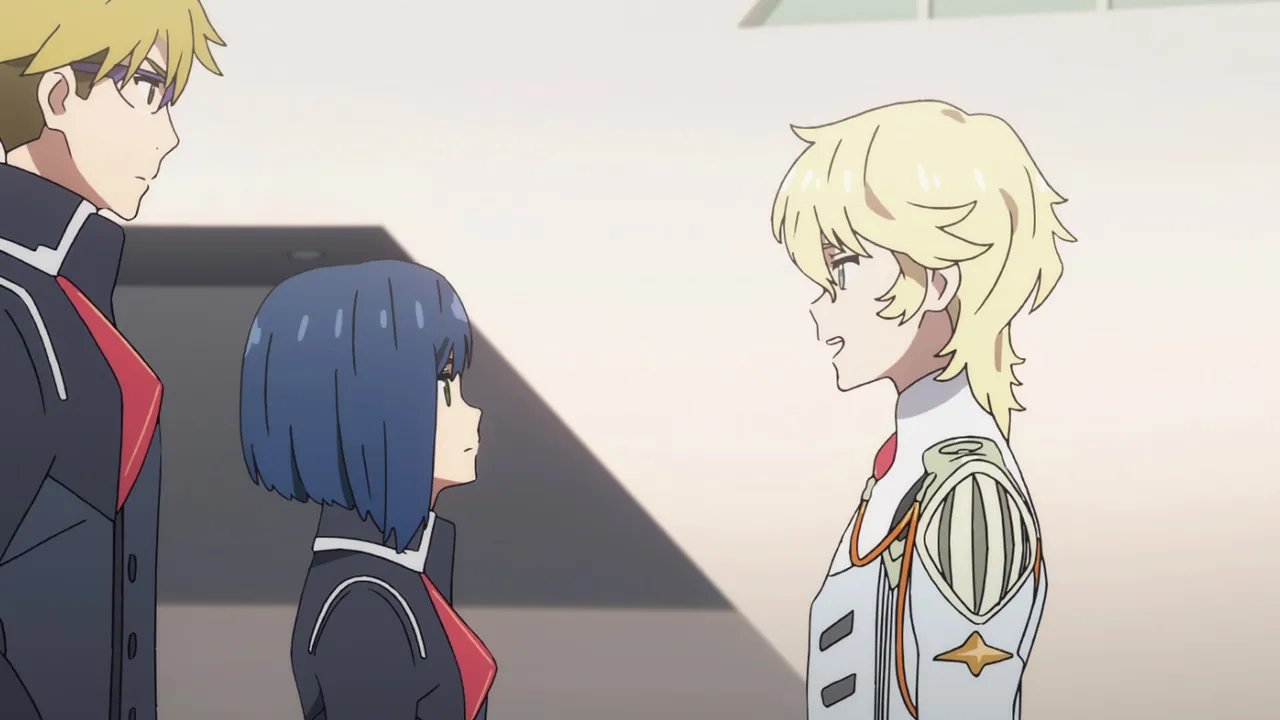 The parasites struggle to come to terms with Hiro being the one who piloted Strelizia. Even Hiro can't really believe it himself. Things come to a head when he's ordered to participate in a mock battle.