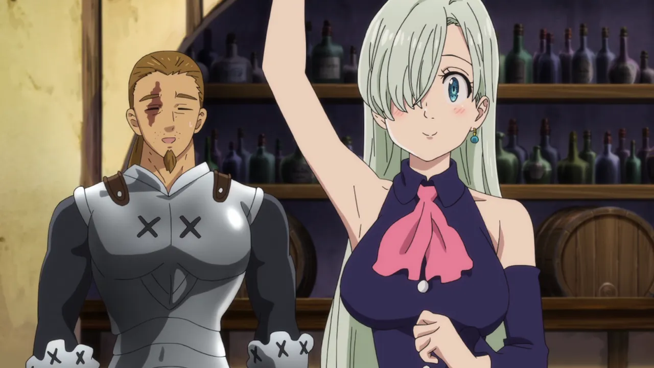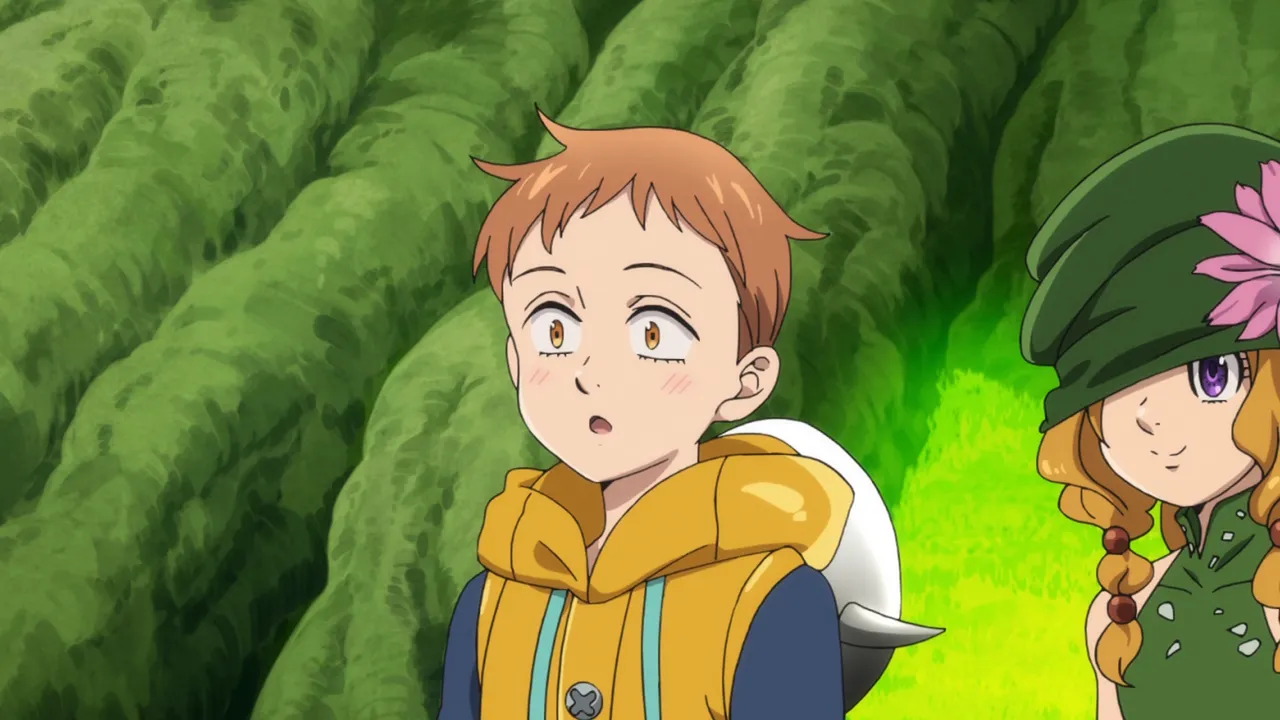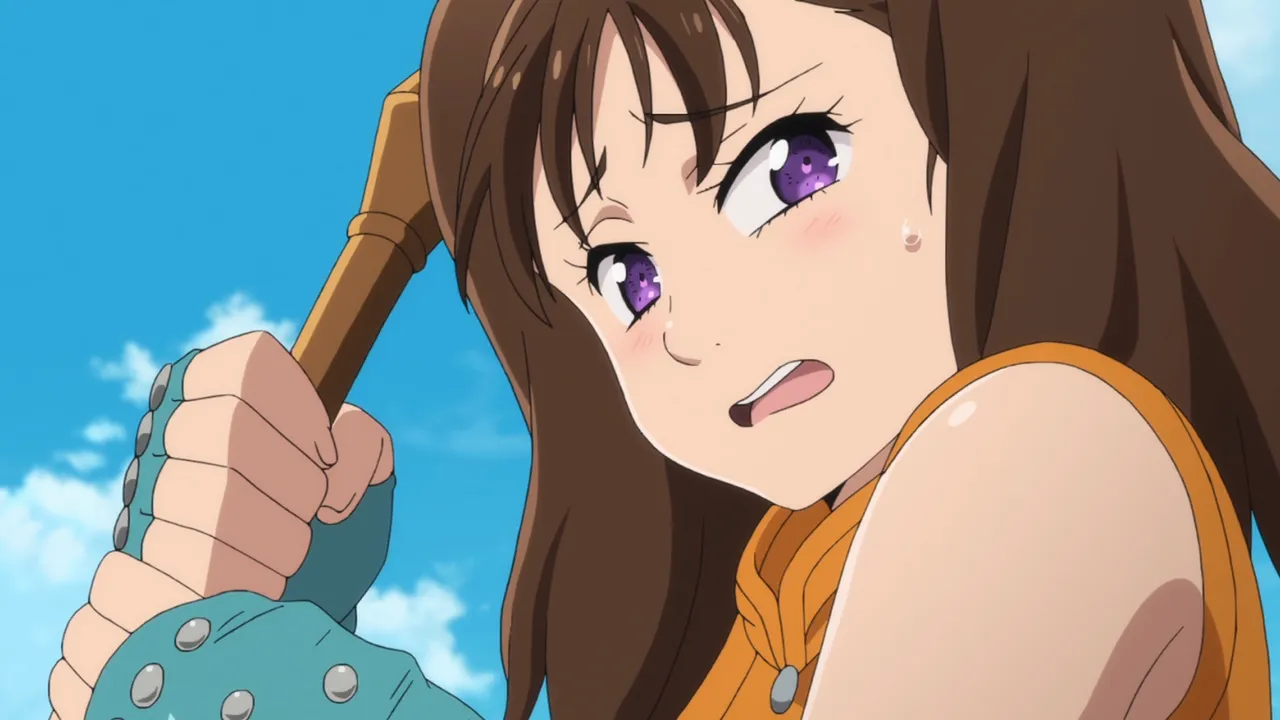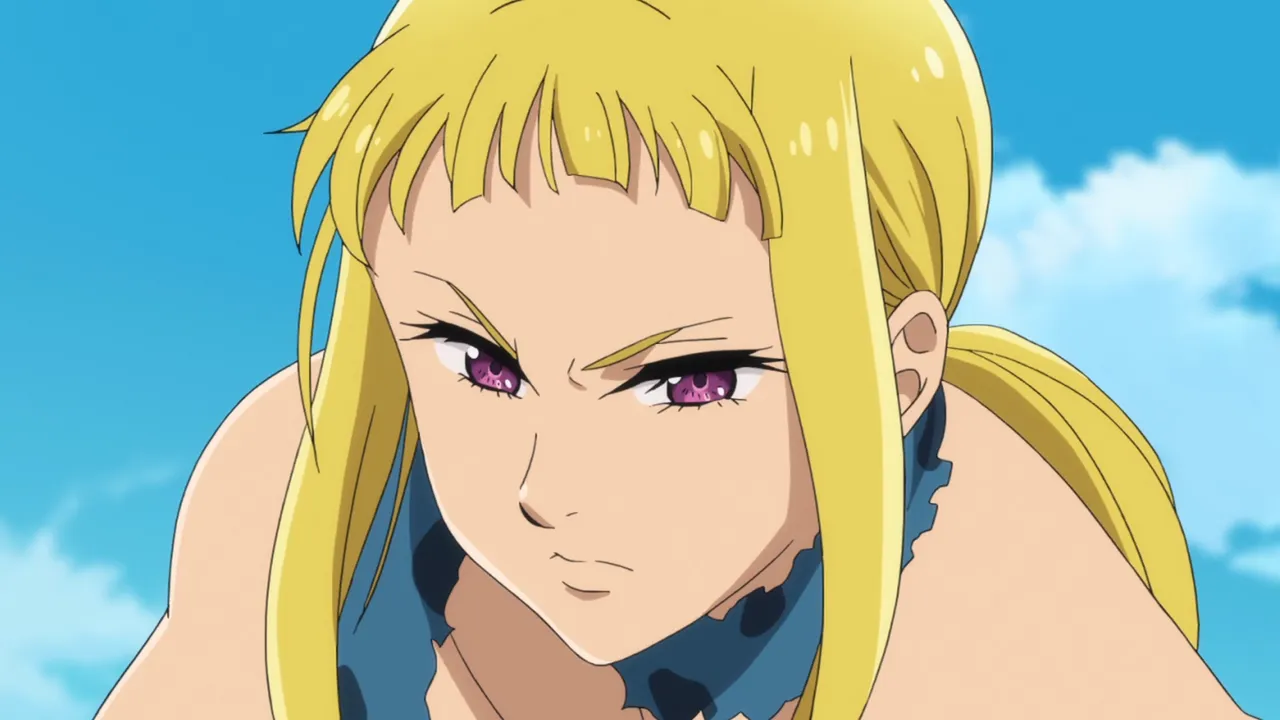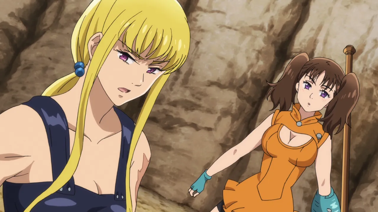 Diane’s memory continues to disappear, suggesting her memories are being tampered with. Diane disappears and Gowther admits that after his fight with Diane over erasing Guila’s memories, he decided to erase Diane’s memories as part of an experiment. He fails to understand why everyone is upset with him. King throws him through a wall. The sins suspect Diane may be heading back to the giants village, Megadoza. A flashback to 16 years ago shows Diane with fellow warrior giants Matrona and Dolores. Dolores is scared of war and wants to leave Megadoza but is too afraid of humans. Diane encounters Meliodas for the first time and realises people exist who are friendly to giants. Diane rushes to tell Dolores but finds she has been killed after being sent on a dangerous mission by Matrona. Diane realises she wants more from life than constant war despite Matrona planning to train her to become chief. Matrona and Diane are hired by Holy Knight Gyannon to fight a war. However Gyannon betrays them, intending to kill Matrona and gain fame. Matrona kills Gyannon but is wounded by a poisoned spear. She urges Diane to keep growing stronger then dies in her arms.